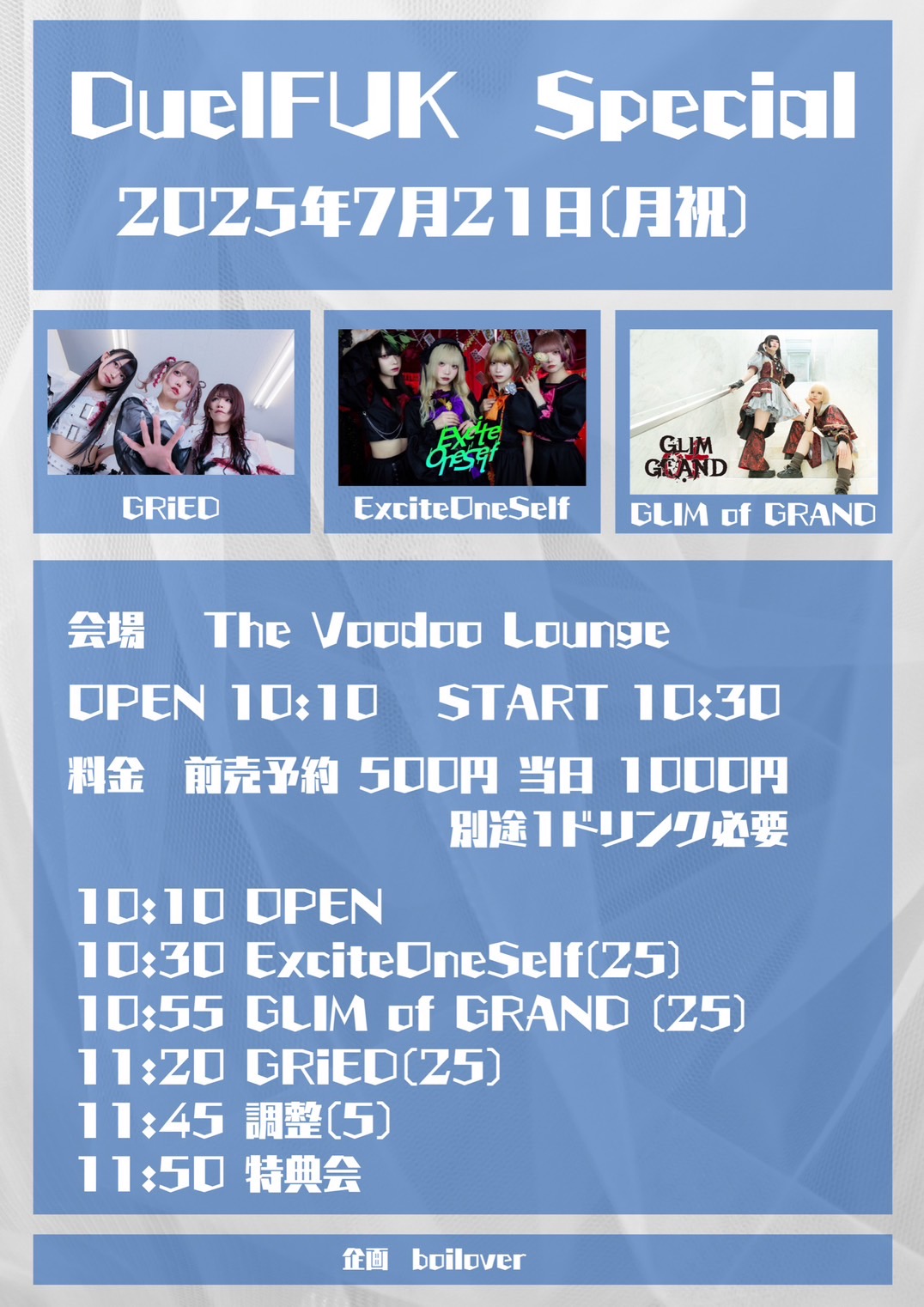 ・本公演で起こったお客様同士でのトラブル、怪我などの責任は主催側では負いかねますのでご了承ください。